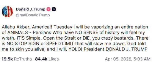 But how can we not be impacted by the crimes being committed in our names, while the inner circle gamble on their information on public markets, while invoking the second coming of Jesus Christ?